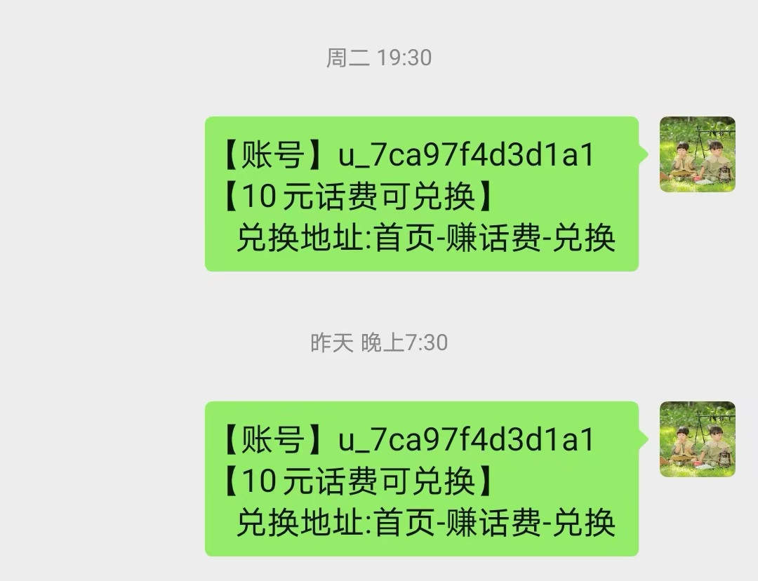 自己写着玩的autman插件,10元话费可兑换,每天晚点7点30发送通知