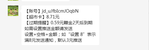 如需设置推送金额请发送设置+空格+金额;如“设置 8”表示满8元发送通知,默认3元推送