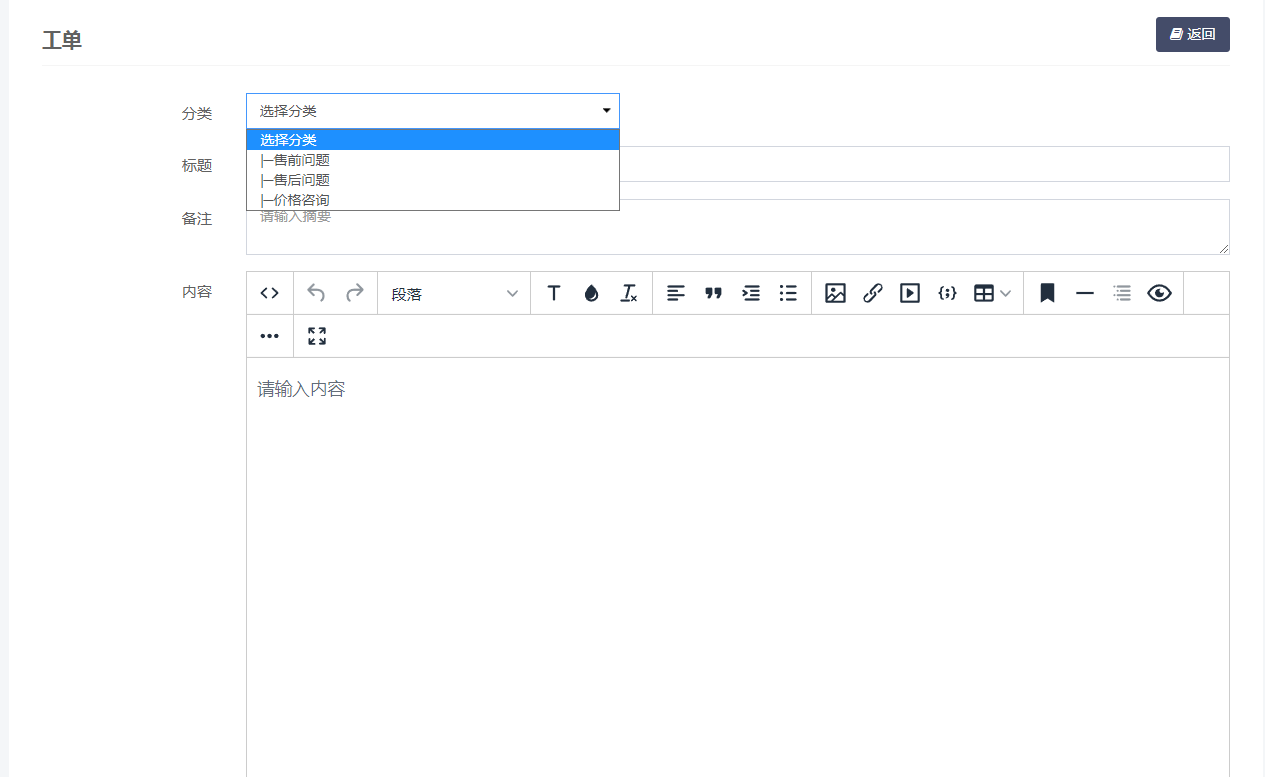 自写插件lecms插件(系统工单插件),写着玩的,后台插件设置:邮箱,工单类型。