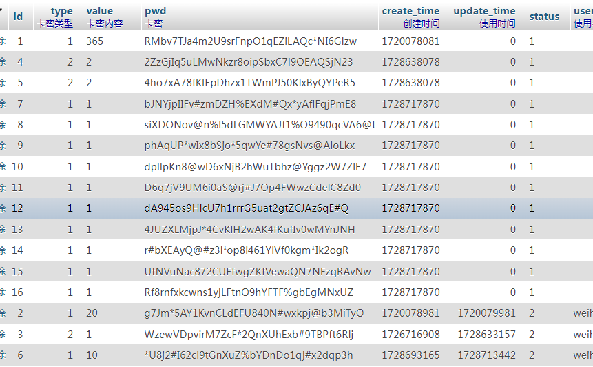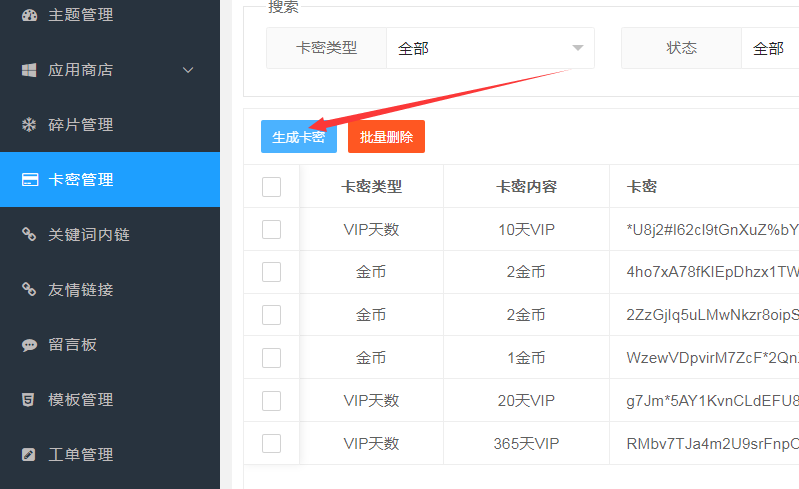 1、根据套餐批量生成卡密